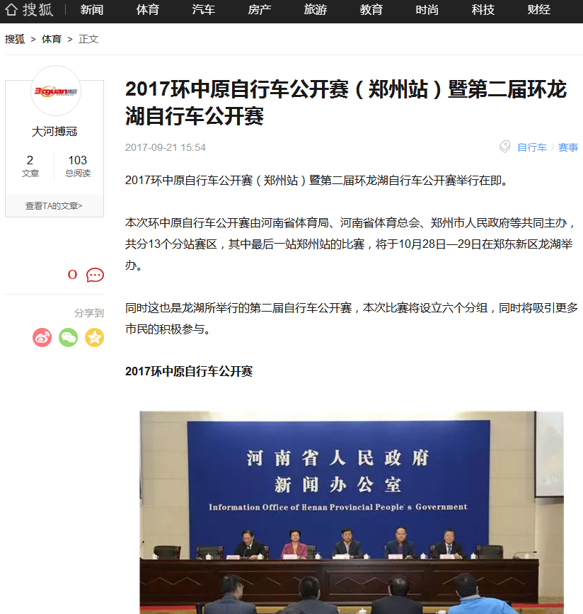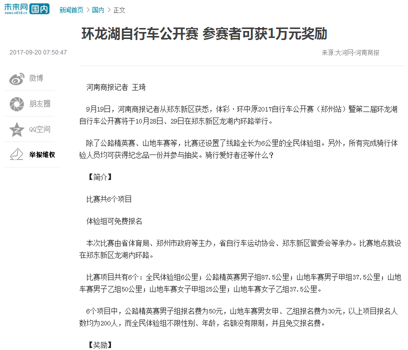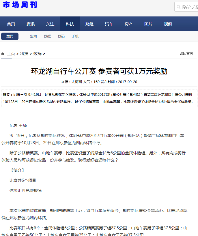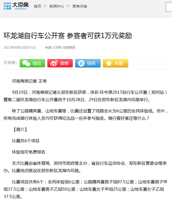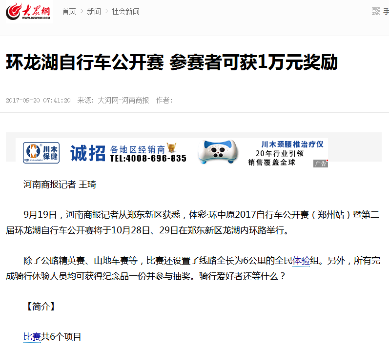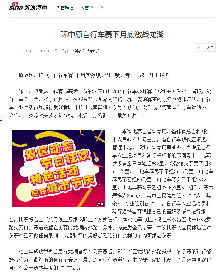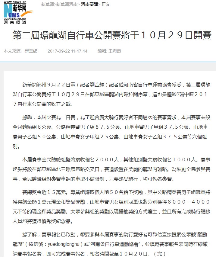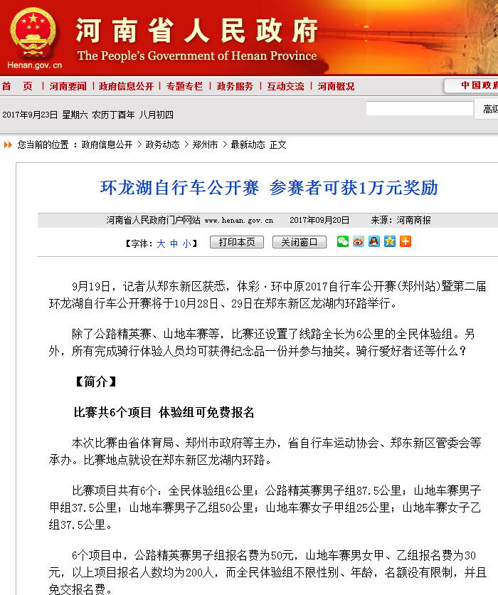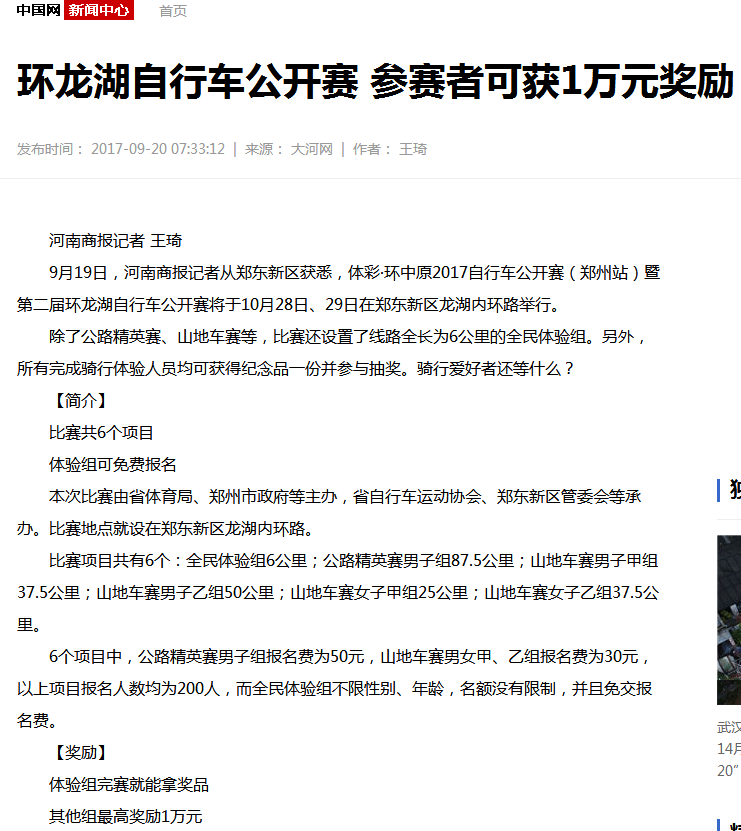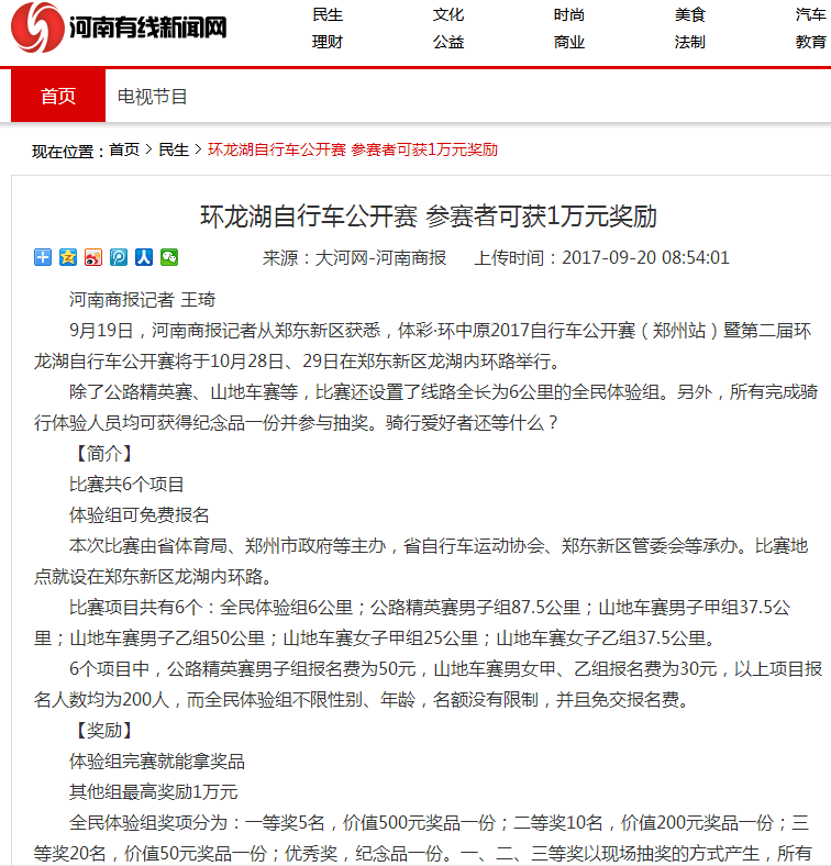 环中原自行车公开赛暨“赊店元青花杯”第二届环龙湖自行车赛网络报道汇总