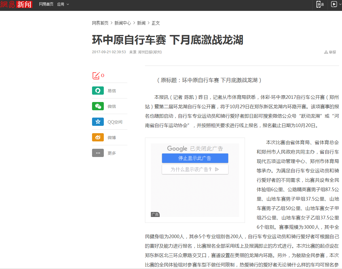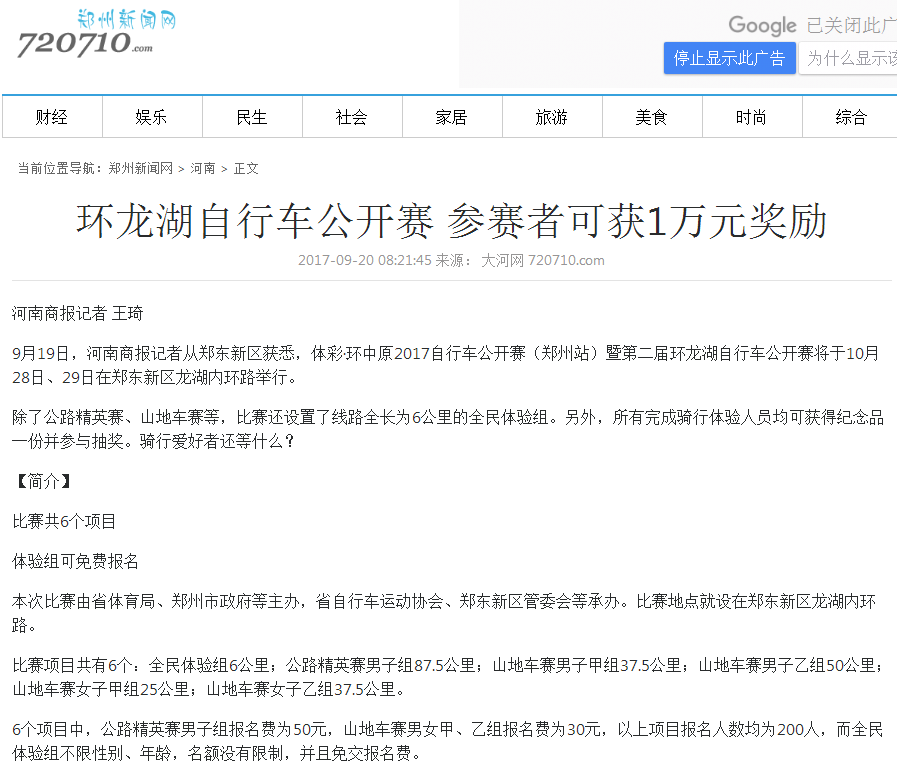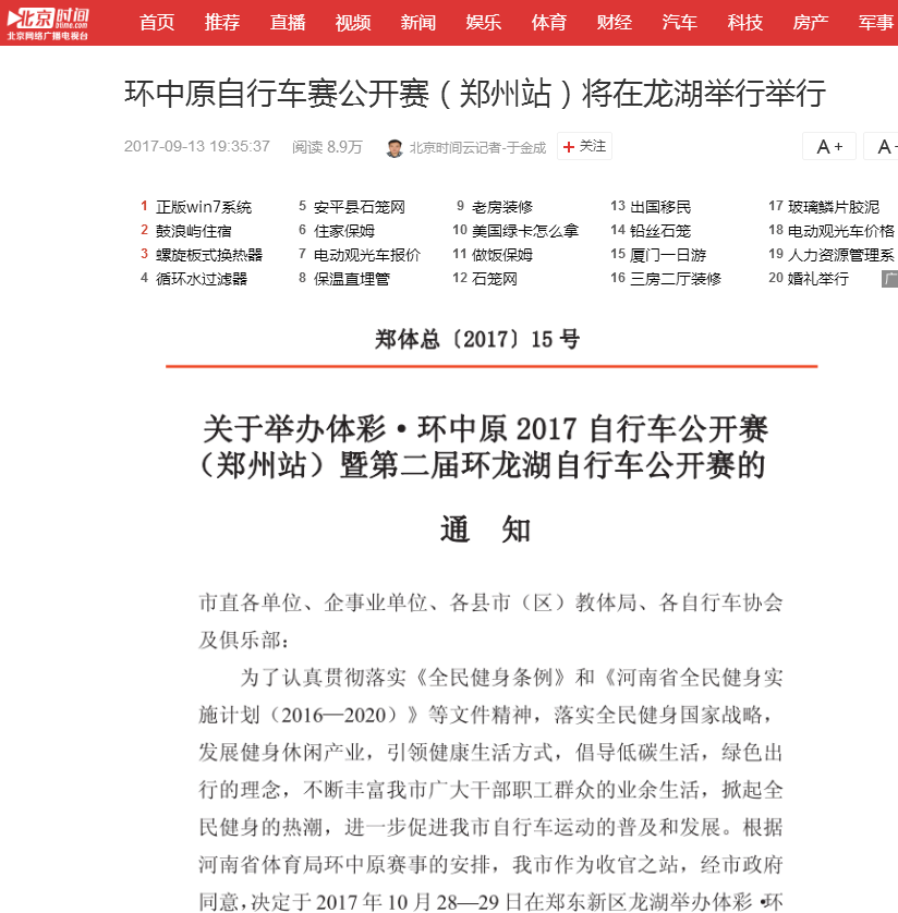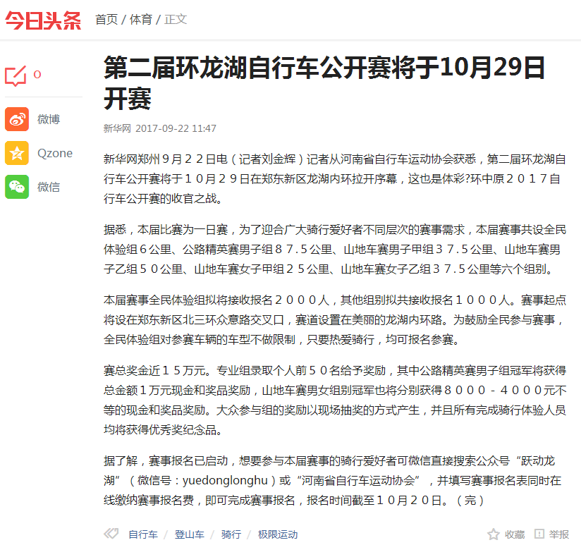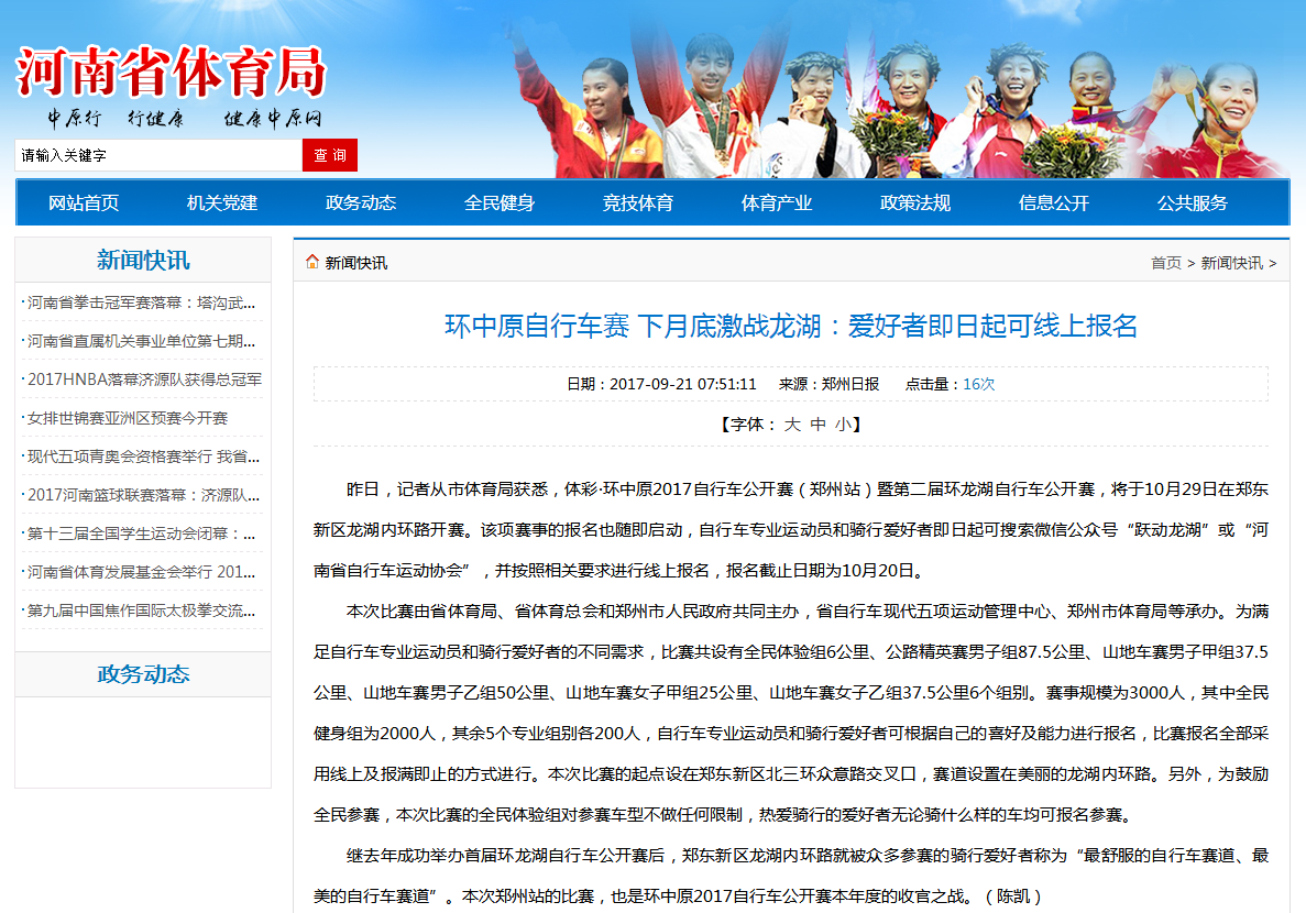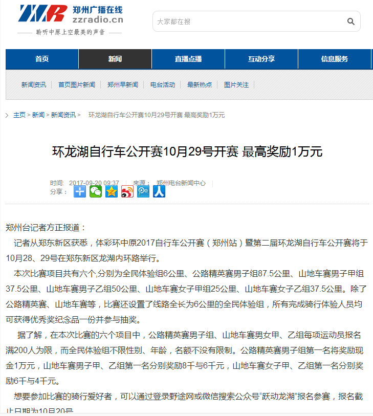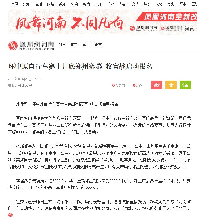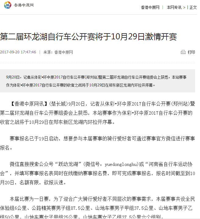 环中原自行车公开赛暨“赊店元青花杯”第二届环龙湖自行车赛网络报道汇总